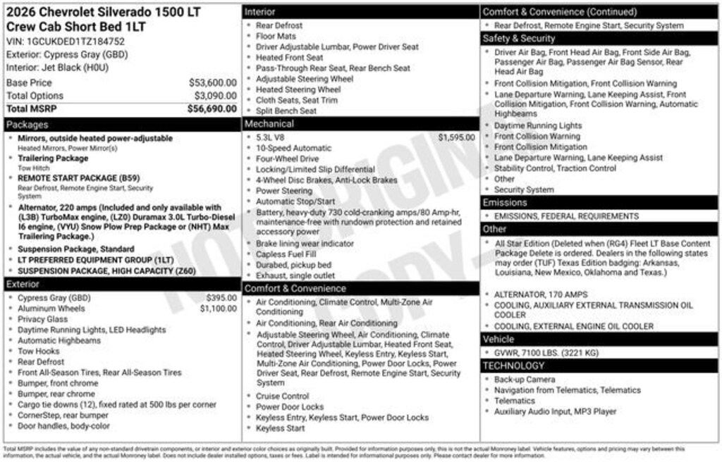 New 2026 ChevroletSilverado 1500 LT Crew Cab