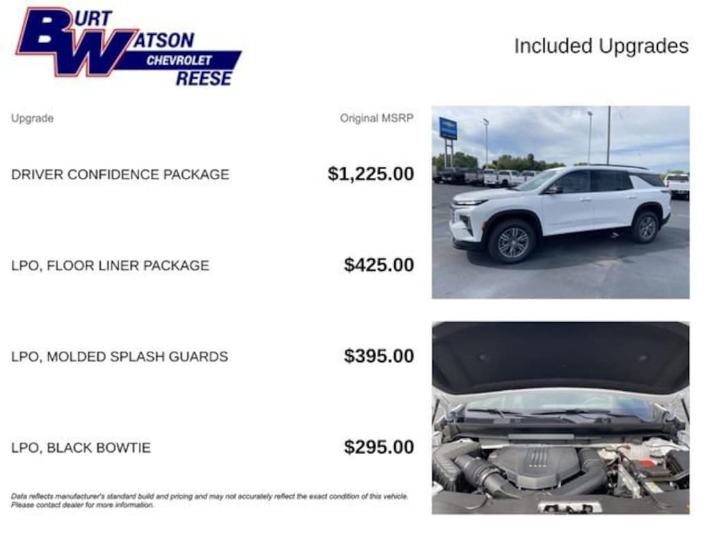 If you're looking to take home a particular courtesy vehicle and call it your own, schedule a test drive with us at our Chevy dealership in Reese. If you have any questions about these models or any other we carry, you are more than welcome to contact us online at Burt Watson Chevrolet Reese, proudly serving Saginaw, Frankenmuth, Pinconning and beyond!