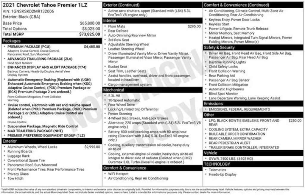 Black 2021 Chevrolet Tahoe Premier 4D Sport Utility EcoTec3 5.3L V8 10-Speed Automatic with Overdrive 4WD