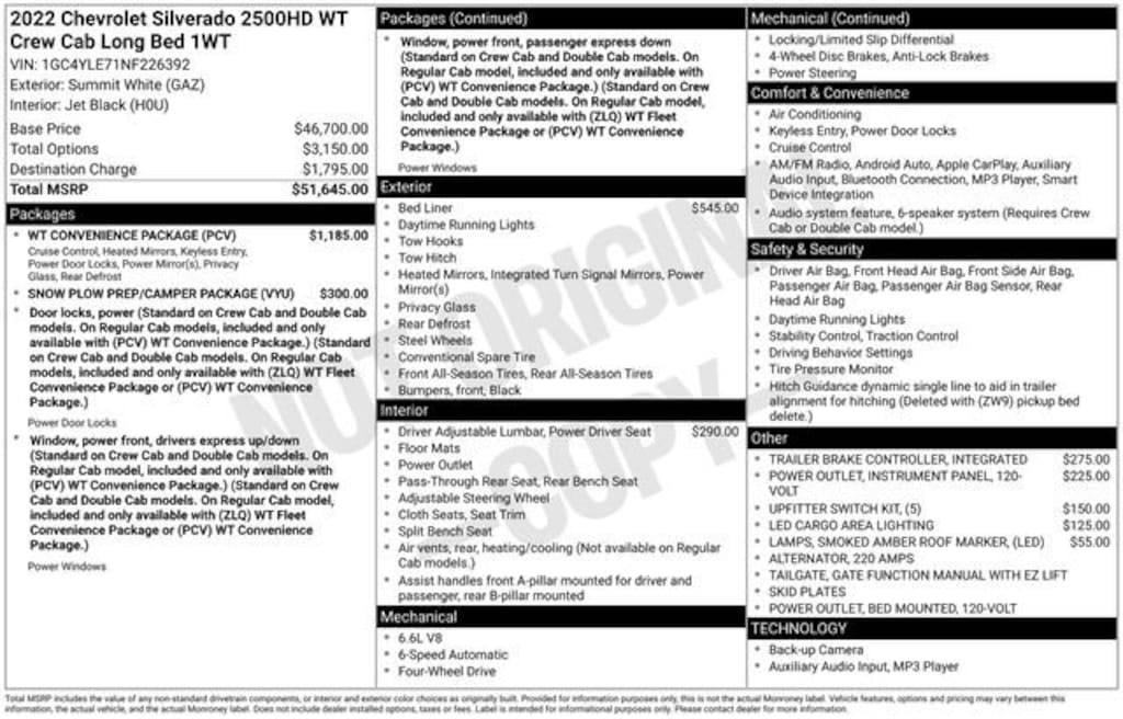 Used 2022 ChevroletSilverado 2500 HD WT Crew Cab