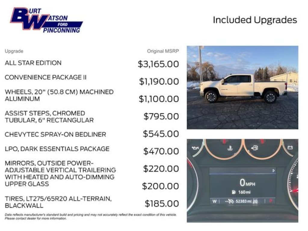 Local Trade, Non Smoker, 172 point inspection certified, 1st oil change free with purchase, 2 Key Fobs, Ceramic coating available on all purchases at discounted pricing, service report available, Heated Seats, 10-Way Power Driver Seat Adjuster w/Lumbar, 12-Volt Rear Auxiliary Power Outlet, 120-Volt Bed Mounted Power Outlet, 120-Volt Instrument Panel Power Outlet, 170 Amp Alternator, 2 USB Ports (1st Row), 2 USB Ports & 1 SD Card Reader (1st Row), 2-Speed Electronic Shift Transfer Case, 4-Way Manual Driver Seat Adjuster, 4.2" Diagonal Color Display Driver Info Center, 6-Speaker Audio System, Advanced Trailering System, All Star Edition, Black Mirror Caps, Black Name Plates (LPO), Black Tailgate CHEVROLET Lettering (LPO), Bluetooth® For Phone, Chevrolet Connected Access Capable, Chrome Front Grille, Cloth Rear Seat w/Storage Package, Color-Keyed Carpeting Floor Covering, Compass, Convenience Package, Convenience Package II, Dark Essentials Package (LPO), Deep-Tinted Glass, Dual Charge-Only USB Ports (2nd Row), Dual-Zone Automatic Climate Control, Electric Rear-Window Defogger, Electrical Lock Control Steering Column, Electronic Cruise Control w/Set & Resume Speed, EZ Lift Power Lock & Release Tailgate, Front 40/20/40 Split-Bench Seats w/Lockable Storage, Front Black Bowtie Emblem (LPO), Front LED Fog Lamps, Front Rubberized Vinyl Floor Mats, Halogen Reflector Headlamps, HD Rear Vision Camera, Heated Driver & Front Outboard Passenger Seating, Heated Steering Wheel, Heated Vertical Trailering Mirrors, Hitch Guidance w/Hitch View, Integrated Trailer Brake Controller, Keyless Open & Start, Lane Change Alert w/Side Blind Zone Alert, LED Cargo Area Lighting, Manual Tilt & Telescoping Steering Column, Manual Tilt-Wheel Steering Column, OnStar & Chevrolet Connected Services Capable, Power Door Locks, Power Front Windows w/Driver Express Up/Down, Power Front Windows w/Passenger Express Down, Power Rear Windows w/Express Down, Power Sliding Rear Window w/Defogger, Preferred Equipment Group 1LT, Radio: Chevrolet Infotainment 3 Plus System, Rear 60/40 Folding Bench Seat (Folds Up), Rear Cross Traffic Alert, Rear Rubberized Vinyl Floor Mats, Rear Vision Camera, Rear Wheelhouse Liners, Remote Keyless Entry, Remote Start Package, Remote Vehicle Starter System, Safety Package, SiriusXM Radio, SiriusXM w/360L, Standard Tailgate, Steering Wheel Audio Controls, Suspension Package, Ultrasonic Front & Rear Park Assist, Unauthorized Entry Theft-Deterrent System, Universal Home Remote, Wi-Fi Hotspot Capable, Wireless Phone Projection, Wrapped Steering Wheel, 3.73 Rear Axle Ratio, 4-Wheel Disc Brakes, 6 Speakers, 6" Rectangular Chromed Tubular Assist Steps, 720 Cold-Cranking Amps Heavy-Duty Battery, ABS brakes, Air Conditioning, Alloy wheels, AM/FM radio: SiriusXM, Apple CarPlay/Android Auto, Auto-Dimming Inside Rear-View Mirror, Black Chevytec Spray-On Bedliner, Brake assist, Bumpers: chrome, Cloth Seat Trim, Delay-off headlights, Driver door bin, Driver vanity mirror, Dual front impact airbags, Dual front side impact airbags, Electronic Stability Control, Front 40/20/40 Split-Bench Seats, Front anti-roll bar, Front Center Armrest w/Storage, Front reading lights, Front wheel independent suspension, Fully automatic headlights, Heated door mirrors, Illuminated entry, Low tire pressure warning, Occupant sensing airbag, Outside temperature display, Overhead airbag, Overhead console, Panic alarm, Passenger door bin, Passenger vanity mirror, Power door mirrors, Power steering, Power windows, Power-Adjustable Vertical Trailering Mirrors, Premium audio system: Chevrolet Infotainment 3, Pwr Up/Down Tailgate Function w/Pwr Lock & Release, Radio: Chevrolet Infotainment 3 System, Rear reading lights, Rear step bumper, Remote keyless entry, Speed control, Split folding rear seat, Stee