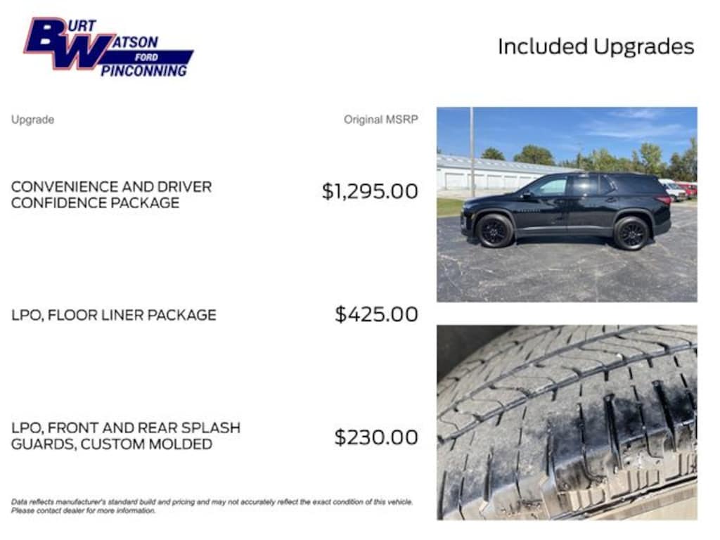 ** Midnight Edition **, ** Originally Sold and Serviced with Burt Watson Family **, Local Trade, Non Smoker, 2 key sets, 172 point inspection certified, 1st oil change free with purchase, 2 Key Fobs, Ceramic coating available on all purchases at discounted pricing, New tires, service report available, Heated Seats, Digital Key, In-Vehicle Wi-Fi, Stolen vehicle location/ recovery system, 1st & 2nd Row All-Weather Floor Liner (LPO), 2-Way Manual Front Passenger Seat Adjuster, 3.49 Axle Ratio, 3rd Row All-Weather Floor Liner (LPO), 4-Wheel Disc Brakes, 4.2" Multi-Color Enhanced Driver Instrument Display, 6 Speakers, 6-Speaker Audio System Feature, 8-Passenger Seating (2-3-3 Seating Configuration), 8-Way Power Driver Seat Adjuster, ABS brakes, Air Conditioning, AM/FM radio: SiriusXM, Automatic temperature control, Black Accent Package (LPO), Black Bowtie, Black Grille (LPO), Black Mirror Caps (LPO), Black Nameplate Kit (LPO), Black Rear License Plate Applique (LPO), Blackout Package (LPO), Brake assist, Convenience & Driver Confidence Package, Dual front impact airbags, Dual front side impact airbags, Electronic Stability Control, Emergency communication system, Exterior Parking Camera Rear, Floor Liner Package (LPO), Four wheel independent suspension, Front anti-roll bar, Front Bucket Seats, Front dual zone A/C, Front reading lights, Heated Driver & Front Passenger Seats, Heavy-Duty Cooling System, Illuminated entry, Integrated Cargo Liner (LPO), Leather steering wheel, Low tire pressure warning, Occupant sensing airbag, Overhead airbag, Power door mirrors, Power driver seat, Power steering, Power windows, Preferred Equipment Group 1LT, Radio data system, Radio: Chevrolet Infotainment 3 Plus System, Radio: Chevrolet Infotainment System AM/FM Stereo, Rear air conditioning, Rear anti-roll bar, Rear Power Liftgate, Rear window defroster, Rear window wiper, Remote keyless entry, Remote Start, SiriusXM Radio, SiriusXM w/360L, Speed-sensing steering, Steering wheel mounted audio controls, Traction control, Trailering Assist Guidelines, Trailering Equipment, Universal Home Remote, Variably intermittent wipers, Wheels: 20" Gloss Black Painted Aluminum (LPO), Wheels: 20" x 8" Aluminum Transit, 3rd row seats: split-bench, Apple CarPlay/Android Auto, Auto High-beam Headlights, Black Roof Rails, Bumpers: body-color, Compass, Custom Molded Front & Rear Splash Guards (LPO), Delay-off headlights, Driver door bin, Driver vanity mirror, Front Center Armrest, Fully automatic headlights, Heated door mirrors, Not Equipped w/Rear Park Assist (060), Outside temperature display, Overhead console, Panic alarm, Passenger door bin, Passenger vanity mirror, Power Driver Lumbar Control, Premium Cloth Seat Trim, Rear reading lights, Security system, Speed control, Spoiler, Tachometer, Telescoping steering wheel, Tilt steering wheel, Trip computer, Turn signal indicator mirrors, Voltmeter, 1st & 2nd Row All-Weather Floor Liner (LPO), 2-Way Manual Front Passenger Seat Adjuster, 3.49 Axle Ratio, 3rd Row All-Weather Floor Liner (LPO), 4-Wheel Disc Brakes, 4.2" Multi-Color Enhanced Driver Instrument Display, 6 Speakers, 6-Speaker Audio System Feature, 8-Passenger Seating (2-3-3 Seating Configuration), 8-Way Power Driver Seat Adjuster, ABS brakes, Air Conditioning, AM/FM radio: SiriusXM, Automatic temperature control, Black Accent Package (LPO), Black Bowtie, Black Grille (LPO), Black Mirror Caps (LPO), Black Nameplate Kit (LPO), Black Rear License Plate Applique (LPO), Blackout Package (LPO), Brake assist, Convenience & Driver Confidence Package, Dual front impact airbags, Dual front side impact airbags, Electronic Stability Control, Emergency communication system, Exterior Parking Camera Rear, F