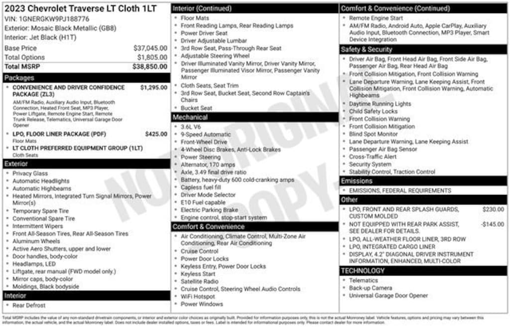 Mosaic Black Metallic 2023 Chevrolet Traverse LT 1LT 4D Sport Utility 3.6L V6 SIDI VVT 9-Speed Automatic FWD