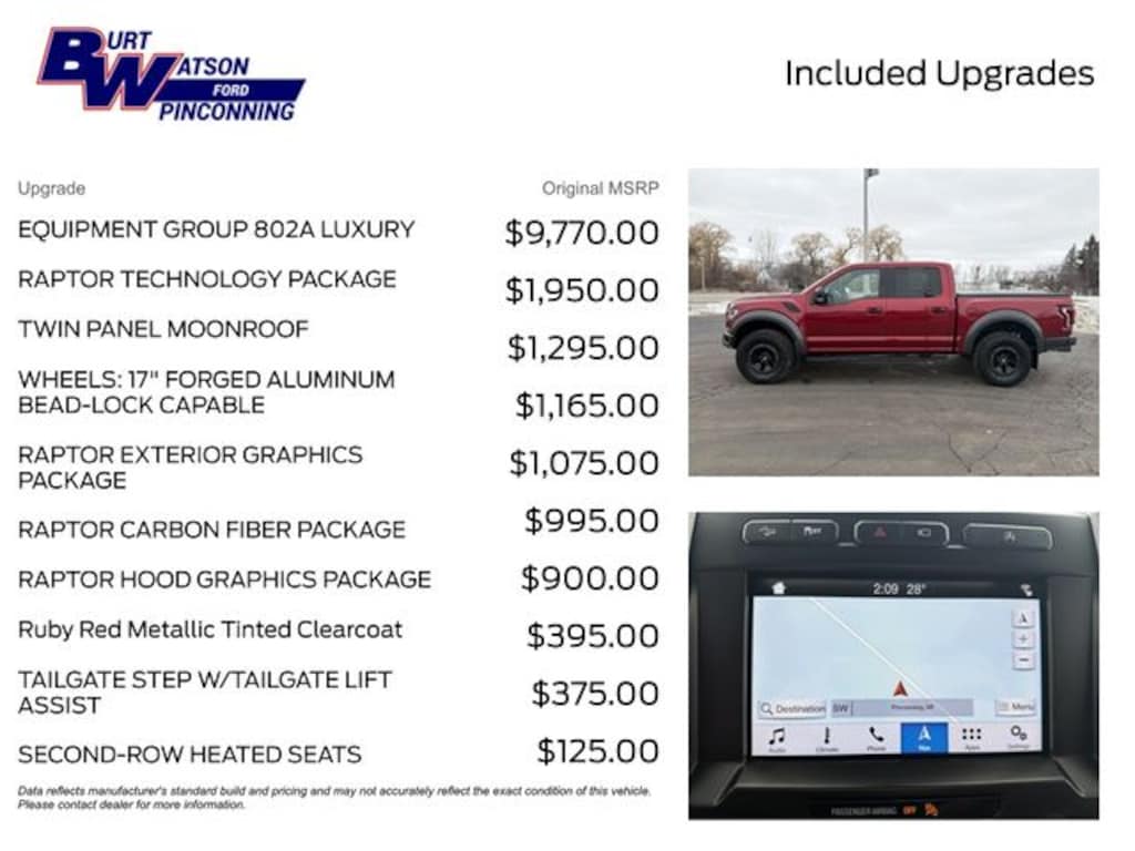 Ruby Red Metallic Tinted Clearcoat 2018 Ford F-150 Raptor 4D SuperCrew 4WD 10-Speed Automatic 3.5L V6 EcoBoost