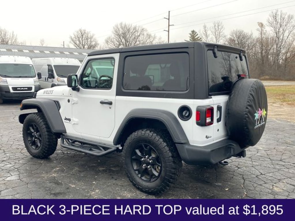 Local Trade, Non Smoker, 2 key sets, 172 point inspection certified, 1st oil change free with purchase, 2 Key Fobs, Ceramic coating available on all purchases at discounted pricing, service report available, Heated Seats, Digital Key, In-Vehicle Wi-Fi, Stolen vehicle location/ recovery system, 240 Amp Alternator, 3.45 Overall Top Gear Ratio, 4-Wheel Disc Brakes, 4-Wheel Drive Swing Gate Decal, 7 & 4 Pin Wiring Harness, 700 Amp Maintenance Free Battery, 8 Speakers, ABS brakes, Air Conditioning w/Auto Temperature Control, AM/FM radio, Anti-Spin Differential Rear Axle, Apple CarPlay, Apple CarPlay/Android Auto, Automatic Headlamps, Auxiliary Battery, Auxiliary Switches, Black Grille, Brake assist, Class II Receiver Hitch, Cloth Low-Back Bucket Seats, Cold Weather Group, Compass, Deep Tint Sunscreen Windows, Delay-off headlights, Driver door bin, Driver vanity mirror, Dual front impact airbags, Dual front side impact airbags, Electronic Stability Control, Emergency communication system: SiriusXM Guardian, Engine Oil Cooler, Front anti-roll bar, Front Bucket Seats, Front Center Armrest w/Storage, Front fog lights, Front reading lights, Google Android Auto, GPS Antenna Input, Heated Front Seats, Heated Steering Wheel, Injection Molded Black Rear Bumper, Integrated Center Stack Radio, Integrated roll-over protection, Integrated Voice Command w/Bluetooth, Low tire pressure warning, Mold In Color Bumper w/Gloss Black, MOPAR All-Weather Floor Mats, Mopar Black Tubular Side Steps, Non-Locking Fuel Cap w/o Discriminator, Normal Duty Suspension, Occupant sensing airbag, Outside temperature display, ParkView Rear Back-Up Camera, Passenger door bin, Passenger vanity mirror, Power steering, Quick Order Package 23K Willys Sport, Radio data system, Radio: Uconnect 4 w/7" Display, Rear anti-roll bar, Rear reading lights, Rear Window Defroster, Remote Keyless Entry, Remote Start System, Security Alarm, Speed control, Start-Stop Dual Battery System, Steering wheel mounted audio controls, Tachometer, Telescoping steering wheel, Tilt steering wheel, Traction control, Trailer Tow & Aux Switch Group, Trip computer, USB Host Flip, Variably intermittent wipers, Wheels: 17" x 7.5" Black Aluminum, Wheels: 17" x 7.5" Black Steel Styled, Willys, Willys Hood Decal, 240 Amp Alternator, 3.45 Overall Top Gear Ratio, 4-Wheel Disc Brakes, 4-Wheel Drive Swing Gate Decal, 7 & 4 Pin Wiring Harness, 700 Amp Maintenance Free Battery, 8 Speakers, ABS brakes, Air Conditioning w/Auto Temperature Control, AM/FM radio, Anti-Spin Differential Rear Axle, Apple CarPlay, Apple CarPlay/Android Auto, Automatic Headlamps, Auxiliary Battery, Auxiliary Switches, Black Grille, Brake assist, Class II Receiver Hitch, Cloth Low-Back Bucket Seats, Cold Weather Group, Compass, Deep Tint Sunscreen Windows, Delay-off headlights, Driver door bin, Driver vanity mirror, Dual front impact airbags, Dual front side impact airbags, Electronic Stability Control, Emergency communication system: SiriusXM Guardian, Engine Oil Cooler, Front anti-roll bar, Front Bucket Seats, Front Center Armrest w/Storage, Front fog lights, Front reading lights, Google Android Auto, GPS Antenna Input, Heated Front Seats, Heated Steering Wheel, Injection Molded Black Rear Bumper, Integrated Center Stack Radio, Integrated roll-over protection, Integrated Voice Command w/Bluetooth, Low tire pressure warning, Mold In Color Bumper w/Gloss Black, MOPAR All-Weather Floor Mats, Mopar Black Tubular Side Steps, Non-Locking Fuel Cap w/o Discriminator, Normal Duty Suspension, Occupant sensing airbag, Outside temperature display, ParkView Rear Back-Up Camera, Passenger door bin, Passenger vanity mirror, Power steering, Quick Order Package 23K Willys Sport, Radio data